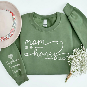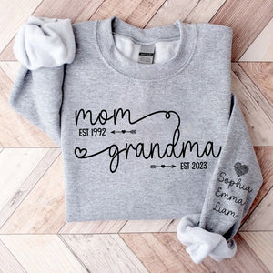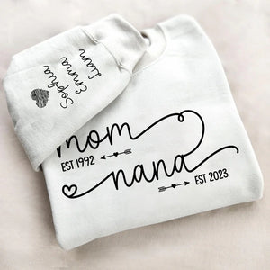 Custom EST Year Design Mom & Nana Sweatshirt - Personalized with Kids Names on Sleeve for Grandma