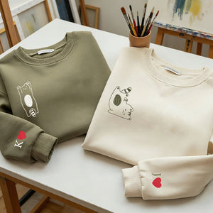 Two sweatshirts, one story. Matching without matching. Coordinated, not identical. Like you.