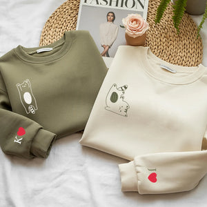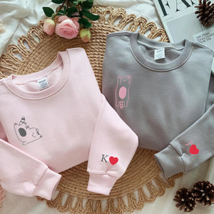 Custom Raccoon Design Matching Couple Sweatshirts - Personalized with Initials on Sleeve for Anniversary
